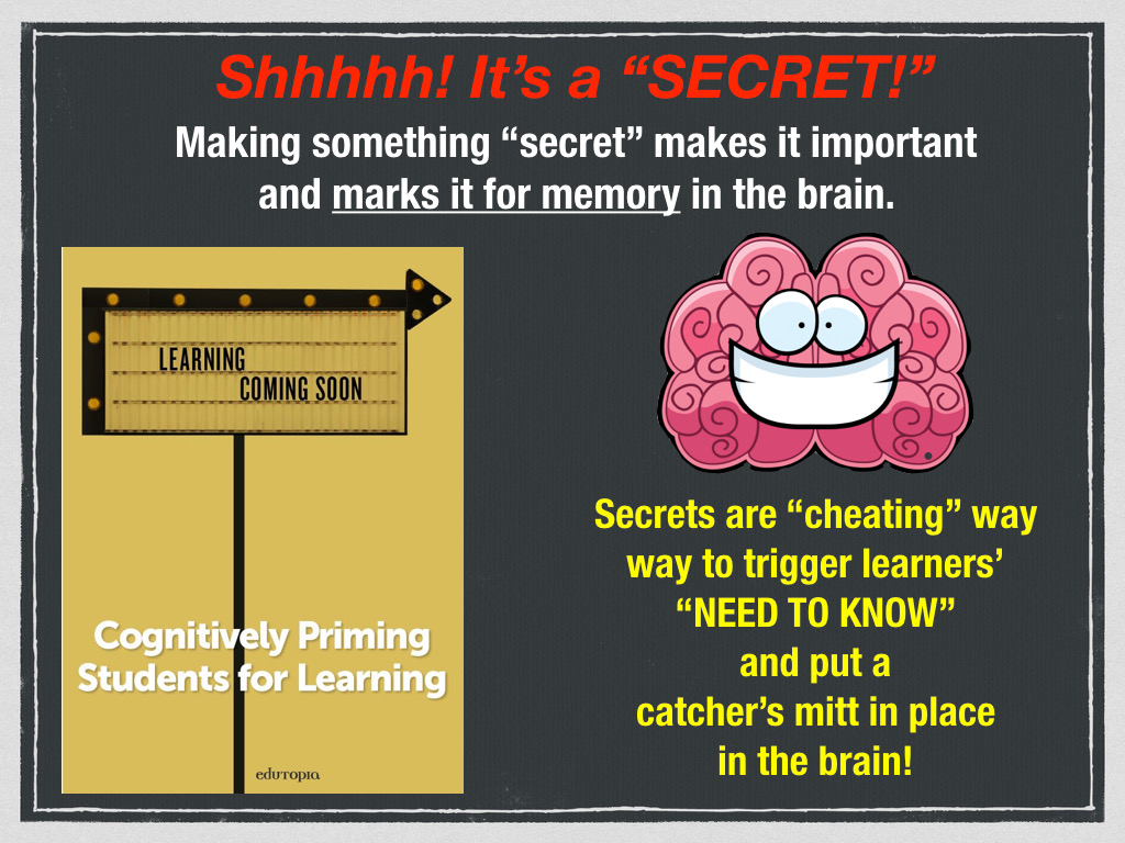 | Secrets make information important to learners, marking it for memory and prioritized learning in the brain. |